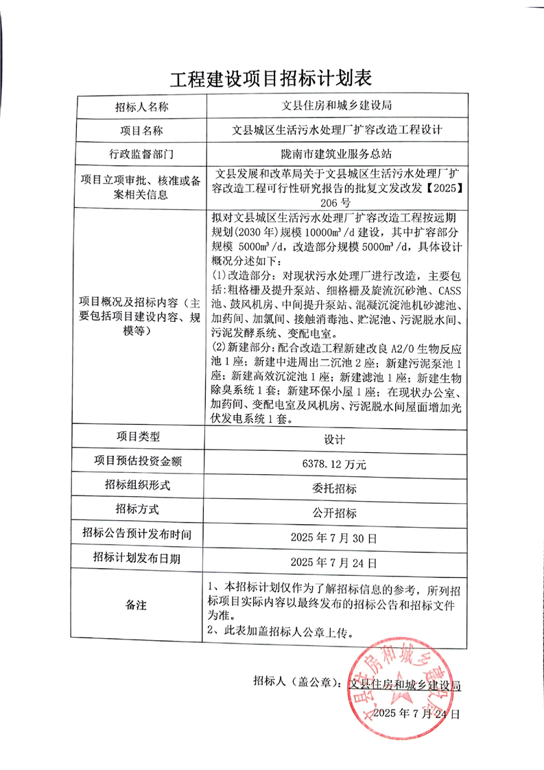 文縣城區(qū)生活污水處理廠擴(kuò)容改造工程設(shè)計(jì)