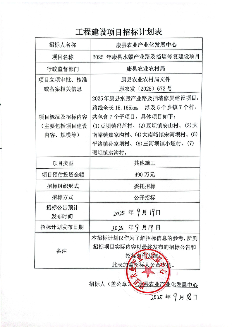 2025 年康縣水毀產(chǎn)業(yè)路及擋墻修復建設項目
