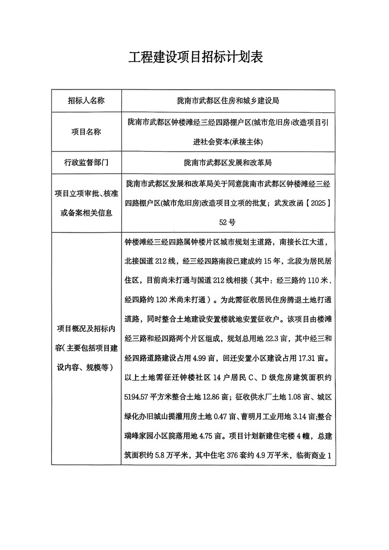 隴南市武都區(qū)鐘樓灘經(jīng)三經(jīng)四路棚戶區(qū)(城市危舊房)改造項(xiàng)目引進(jìn)社會資本(承接主體)