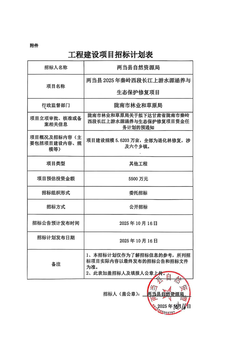 兩當(dāng)縣2025年秦嶺西段長江上游水源涵養(yǎng)與生態(tài)保護(hù)修復(fù)項(xiàng)目