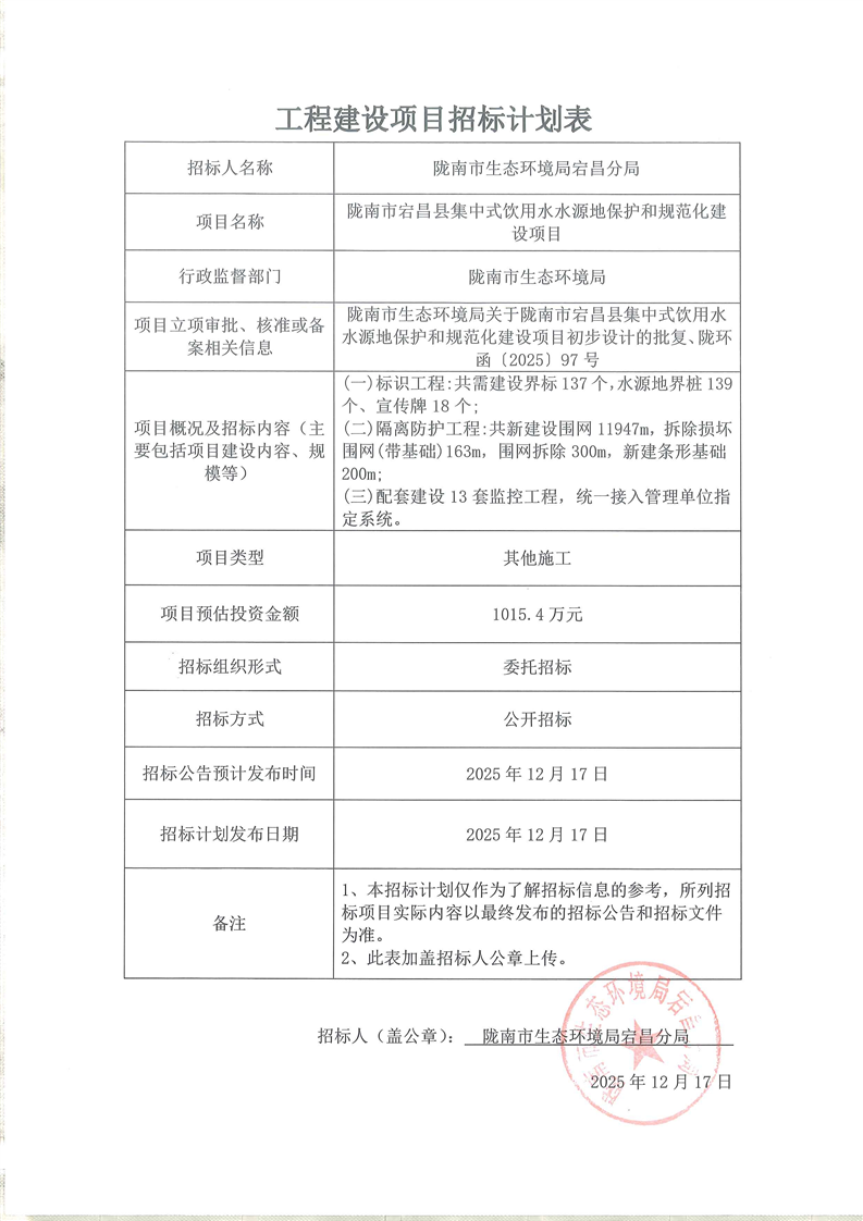 隴南市宕昌縣集中式飲用水水源地保護和規(guī)范化建設(shè)項目