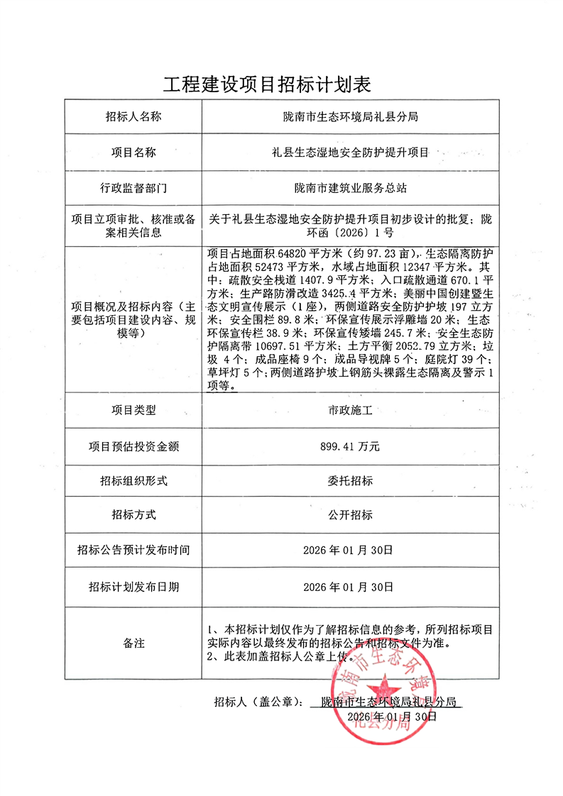 禮縣生態(tài)濕地安全防護提升項目