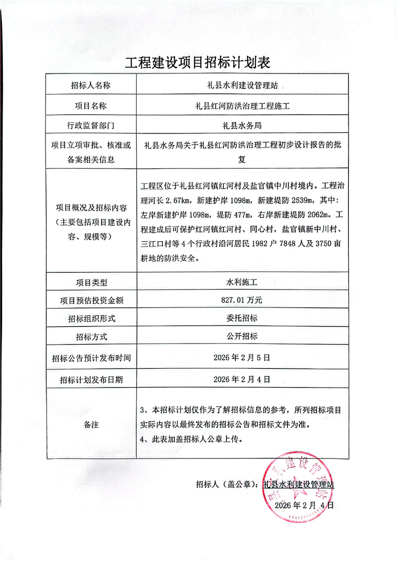 附件:招標(biāo)計劃表--禮縣紅河防洪治理工程施工.pdf