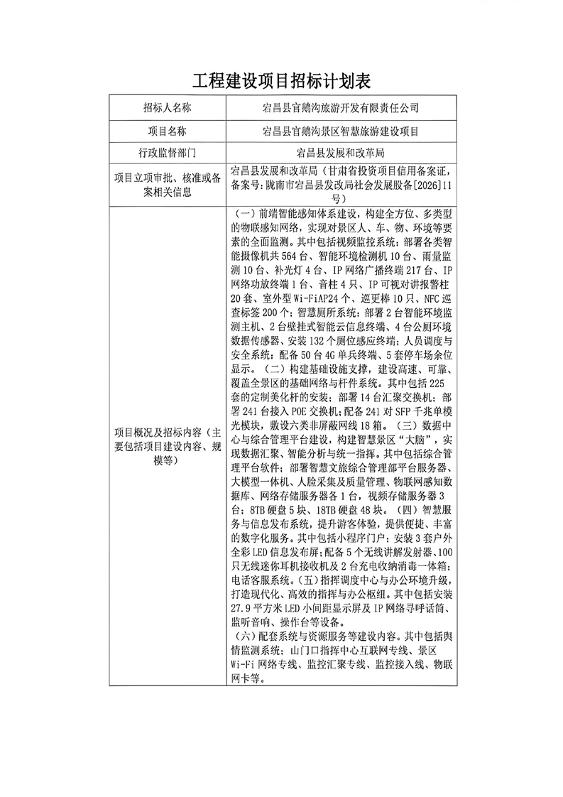宕昌縣官鵝溝景區(qū)智慧旅游建設(shè)項(xiàng)目
