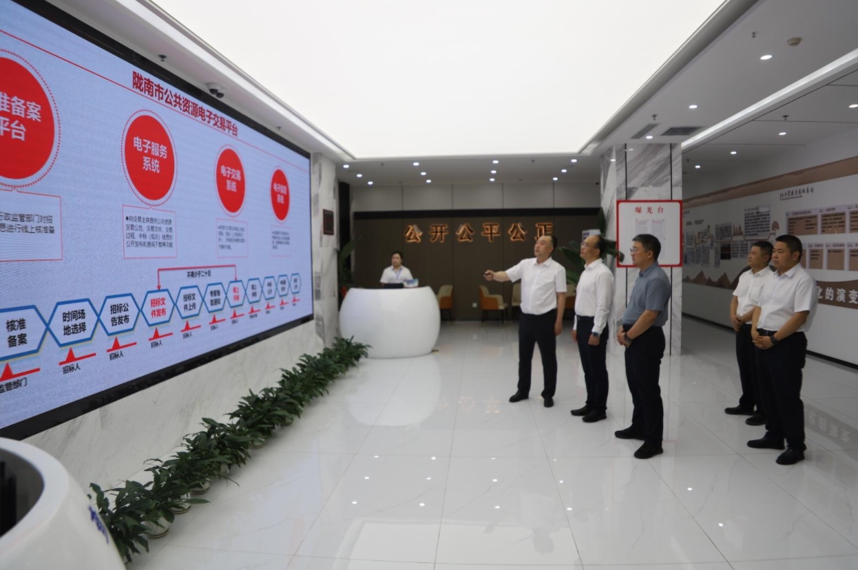 在調(diào)研過程中,李榮先后察看了交易服務(wù)大廳、網(wǎng)上開標(biāo)直播大廳、專家抽取室、封閉評(píng)標(biāo)區(qū)、多功能交易廳、黨建活動(dòng)中心、行業(yè)監(jiān)管區(qū)、電子檔案管理室等運(yùn)行情況,現(xiàn)場(chǎng)認(rèn)真聽取了有關(guān)情況的匯報(bào)。對(duì)交易中心在場(chǎng)所設(shè)施保障、推行全流程電子化交易、黨建與業(yè)務(wù)融合發(fā)展、營(yíng)造良好營(yíng)商環(huán)境等方面工作給予了充分肯定。